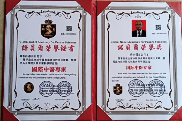 多年来,杨宗仙医生凭借着卓越的医术和杰出的贡献,获得了众多专业荣誉和社会荣誉。他被中国民族卫生协会培训部聘任为全国难治病研究专家委员会委员,这是对他在疑难病症治疗领域专业能力的高度认可。此后,他又陆续获得了“中医战略科学家”“优秀中医师”等荣誉称号。
