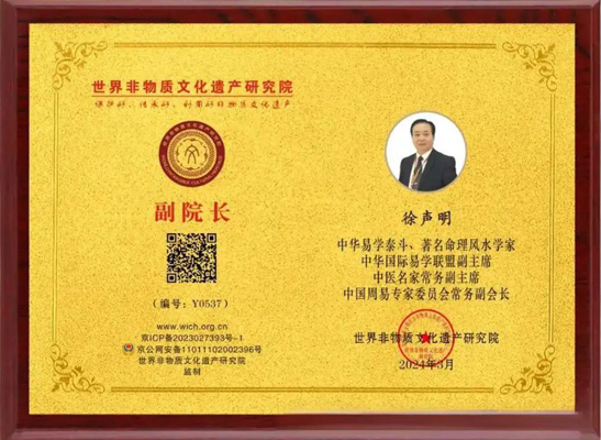 在中华优秀传统文化复兴的浪潮中,世界非物质文化遗产研究院副院长徐声明,作为祖传三代的周易世家传人,以三十余载的执着坚守,深耕易学领域,兼修中医技艺,成为推动国学文化复兴的重要力量,书写着非遗传承者的使命担当。