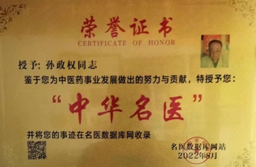 社会荣誉:由于孙政权医生在医学领域的杰出贡献,获得了多项社会荣誉和奖项。这些荣誉不仅是对他个人能力的认可,也是对他为医学事业所做贡献的肯定。
