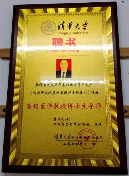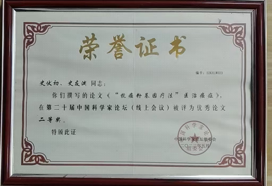 在科研工作方面,史友渊也取得了丰硕的成果,并获得了多项科研奖励。他的抗癌粉研发成果在国内外医学界引起了广泛关注,并获得了多项奖项。例如,2021年5月,“抗癌粉及其制备方法”荣获第十八届中国科学家论坛组委会2020 - 2021科技创新优秀发明成果;2022年5月,“抗癌粉基因疗法”医治癌症在第二十届中国科学家论坛(线上会议)被评为优秀论文二等奖;2023年3月,“抗癌粉基因疗法”被中国大健康产业峰会组委会推选为2023健康产业技术创新优秀成果。这些奖励不仅是对他科研工作的肯定和鼓励,也为他继续开展科研创新提供了动力和支持。