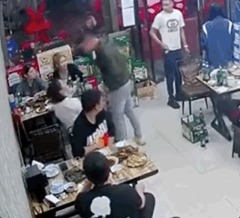 更丧心病狂的是,当听到店里传来打斗声,绿衣男子在门外的几个“兄弟”小跑着进来帮忙围殴几个敢于反抗的女孩。