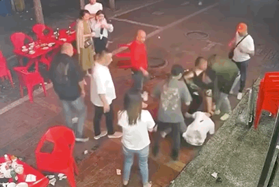 监控录像最后,镜头外仍然有男子大喊“打死你”和“你tm的打电话干嘛?”的声音,和女子大喊“你打我干嘛”的反抗,疑似他们又殴打了其他女性。